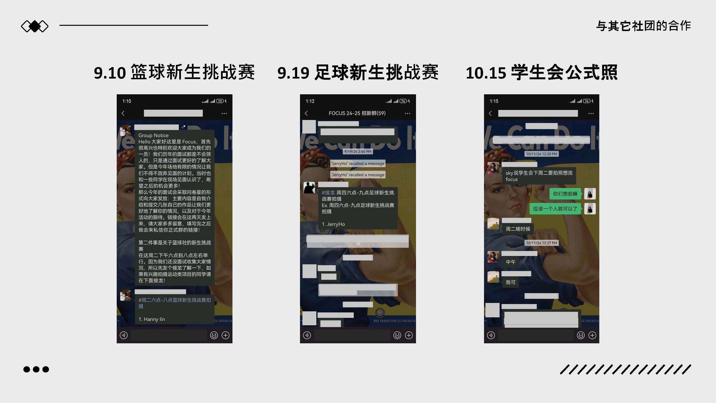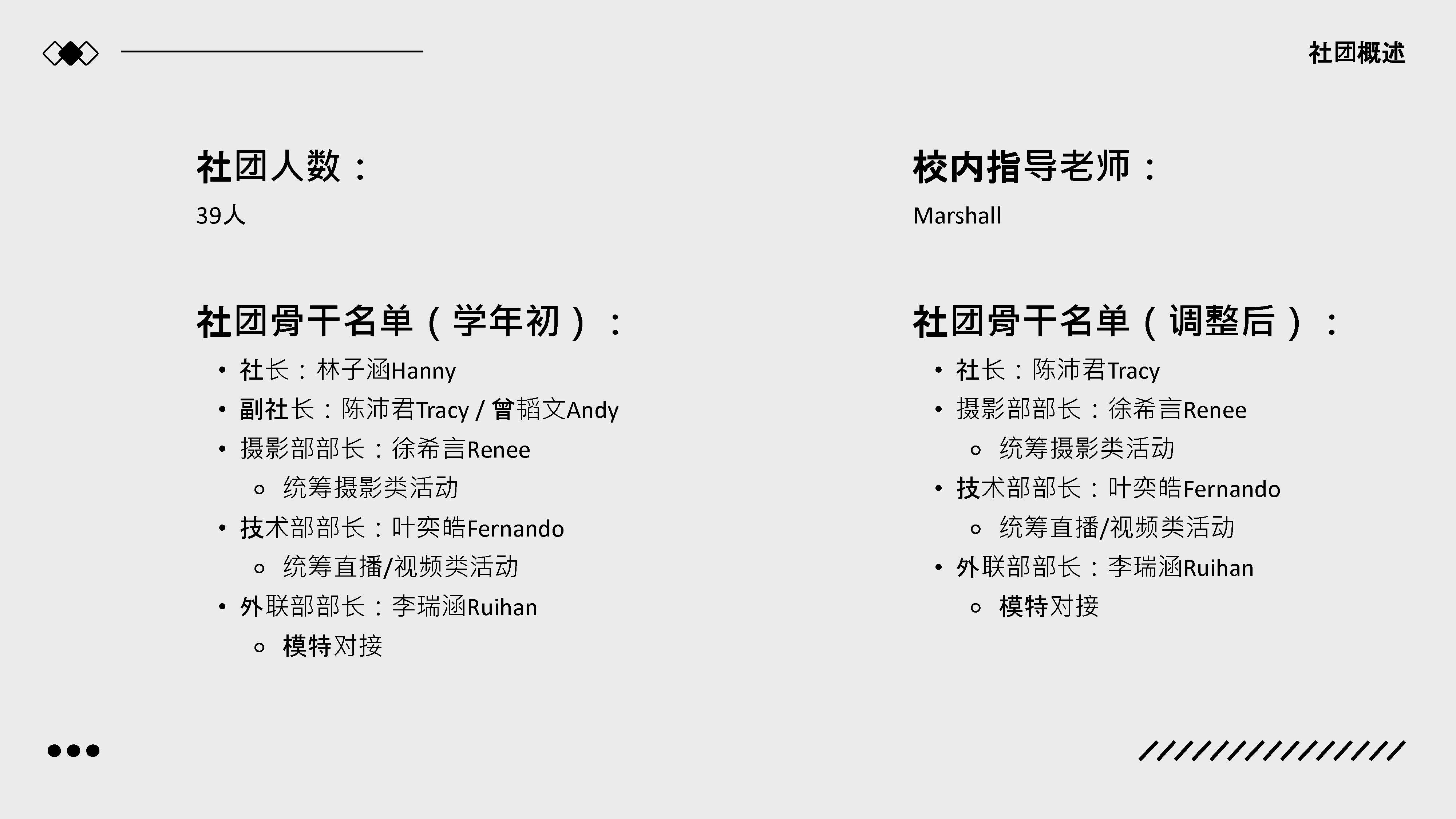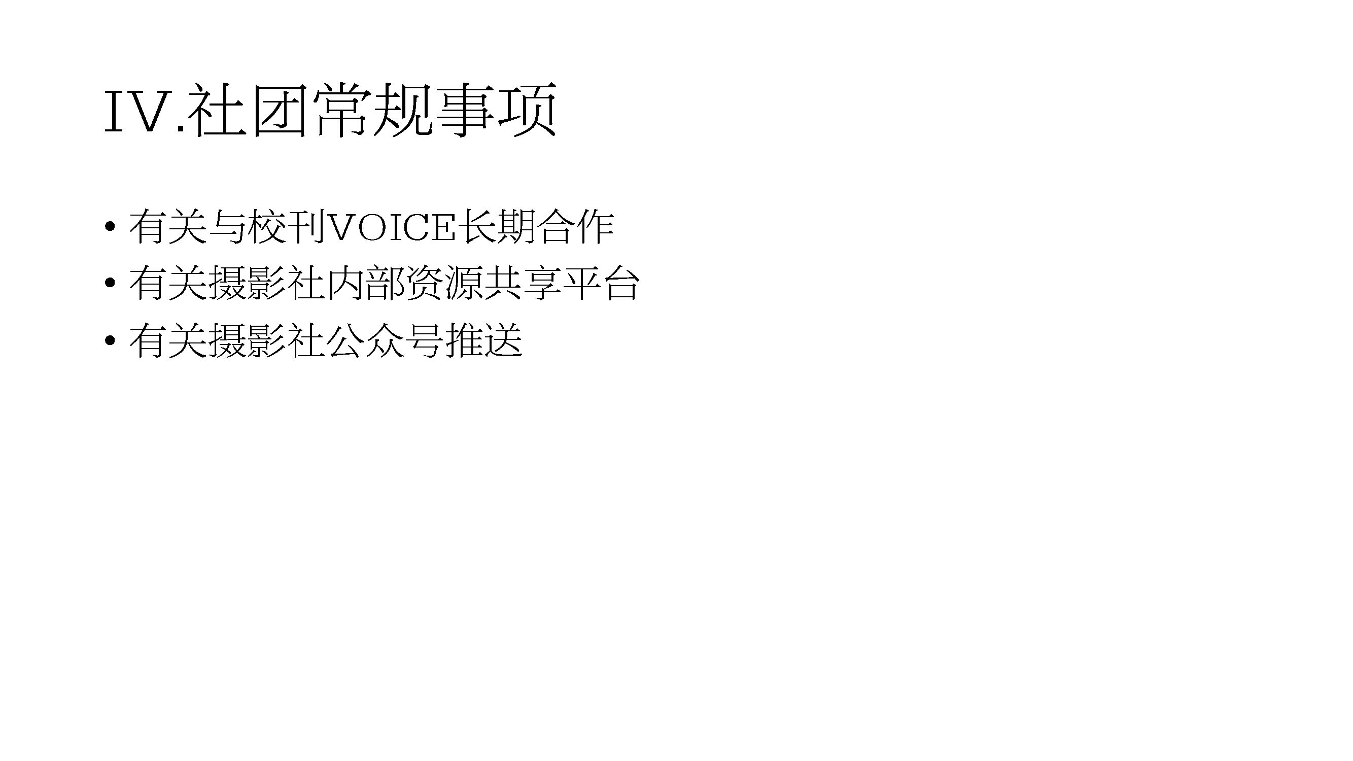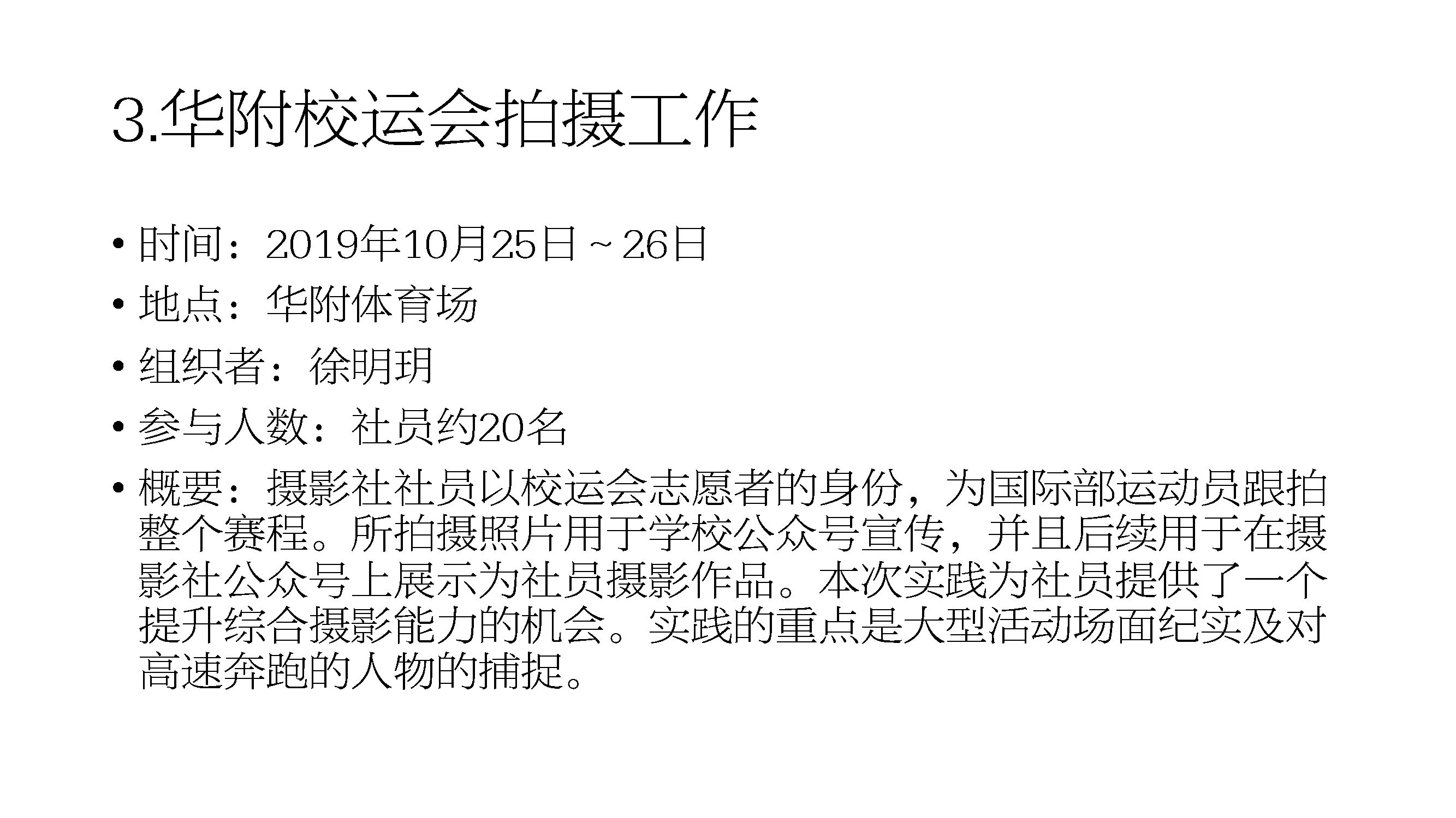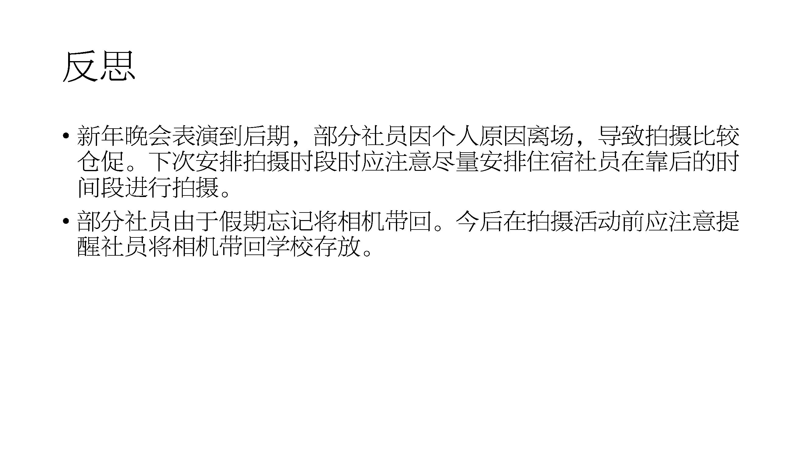 为了让新社员更熟悉HFIPhotos,第一次社团例会主要内容包括自我介绍,此学年活动大概timeline,以及社团规则。