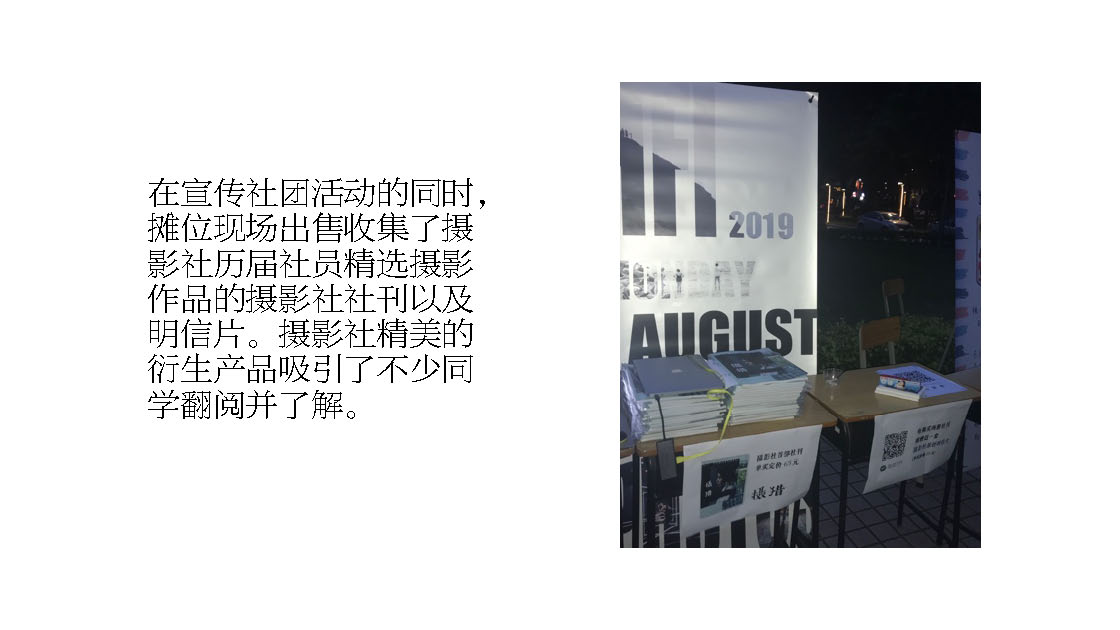 为了更好的让新高一以及转学生了解HFIPhotos,HFIPhotos在社团社团展览招新日上摆出上一学年的成果,即由社员共同制作的明信片。同时社长也摆出招新群的微信二维码,方便同学们加入并且提出尚未解答的疑问。