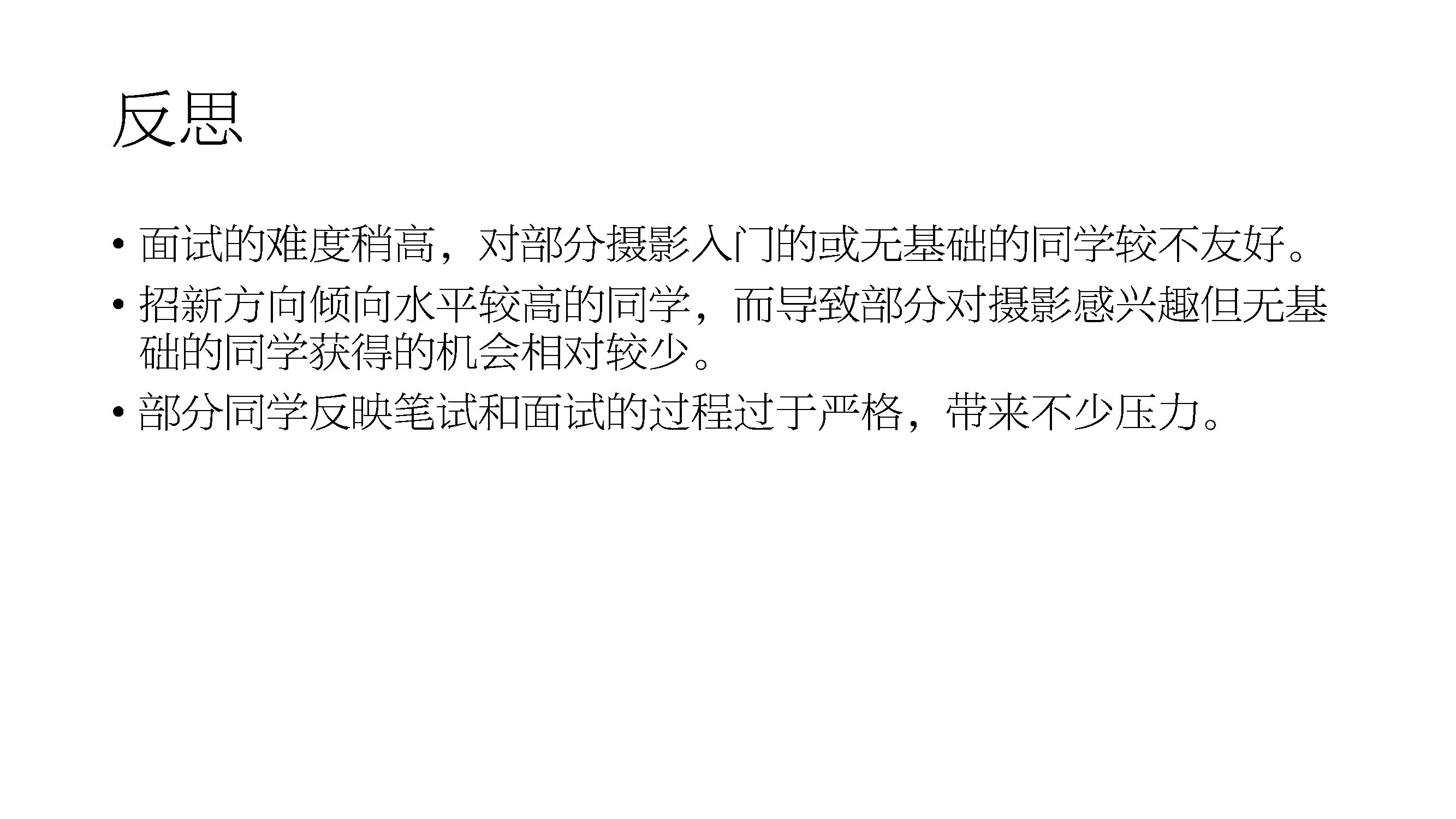 在经过长达两周的邮箱交图筛选后,三位社长以及上届骨干社员参与了招新面试中。在面试中,通过一些与摄影社贡献方面的问题,以及一些较为基础的摄影知识提问,我们最终筛选出13位2019届新成员。