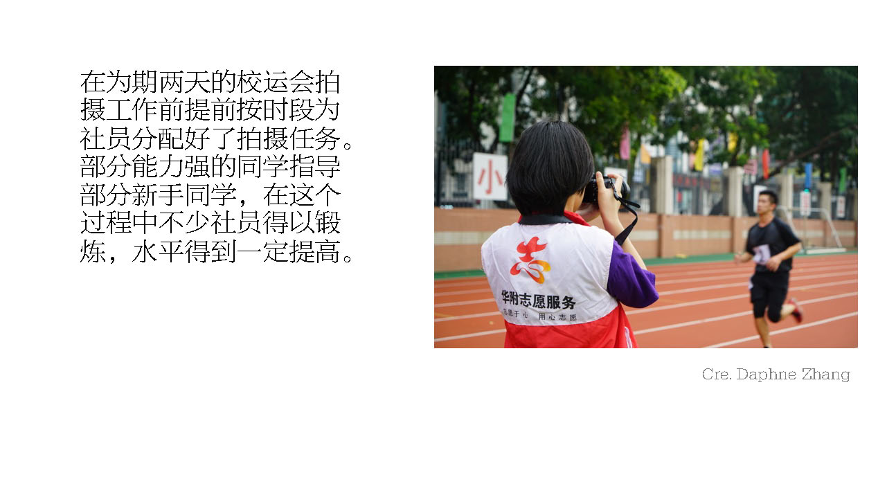 为了记录一年一度篮球总决赛,摄影社有若干个成员在篮球总决赛时进行全程跟拍,照片被用于制作篮球社公众号。