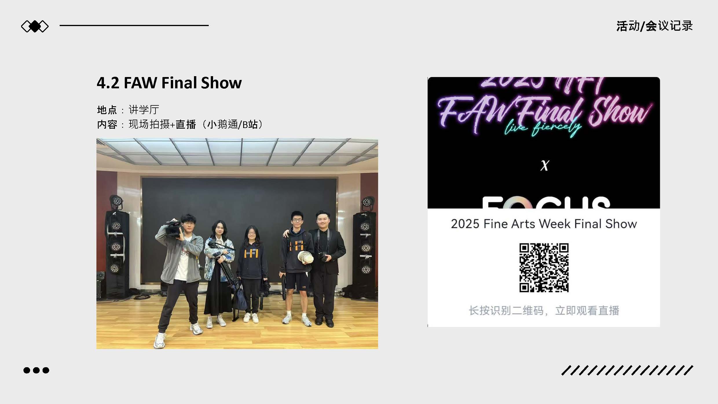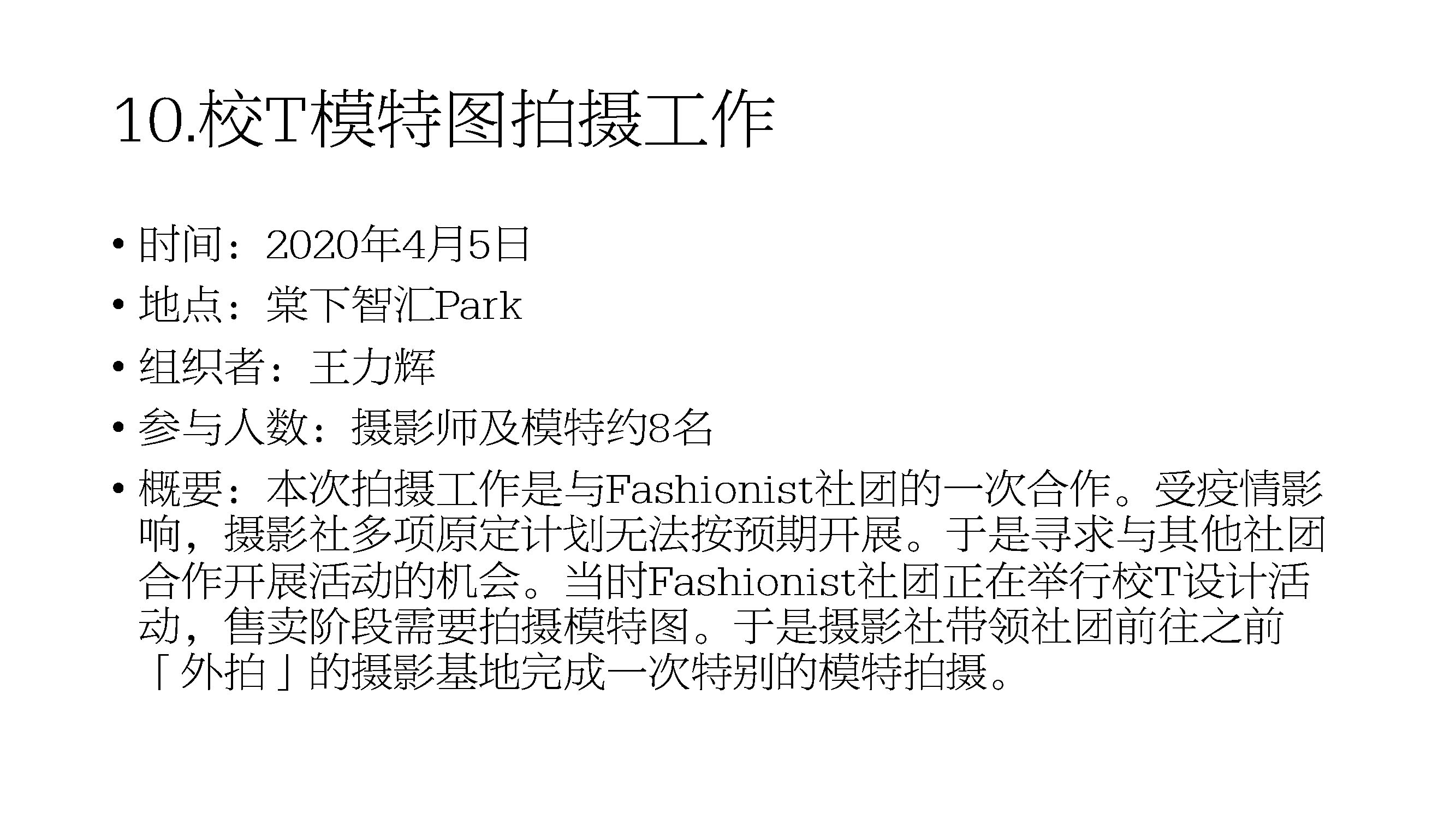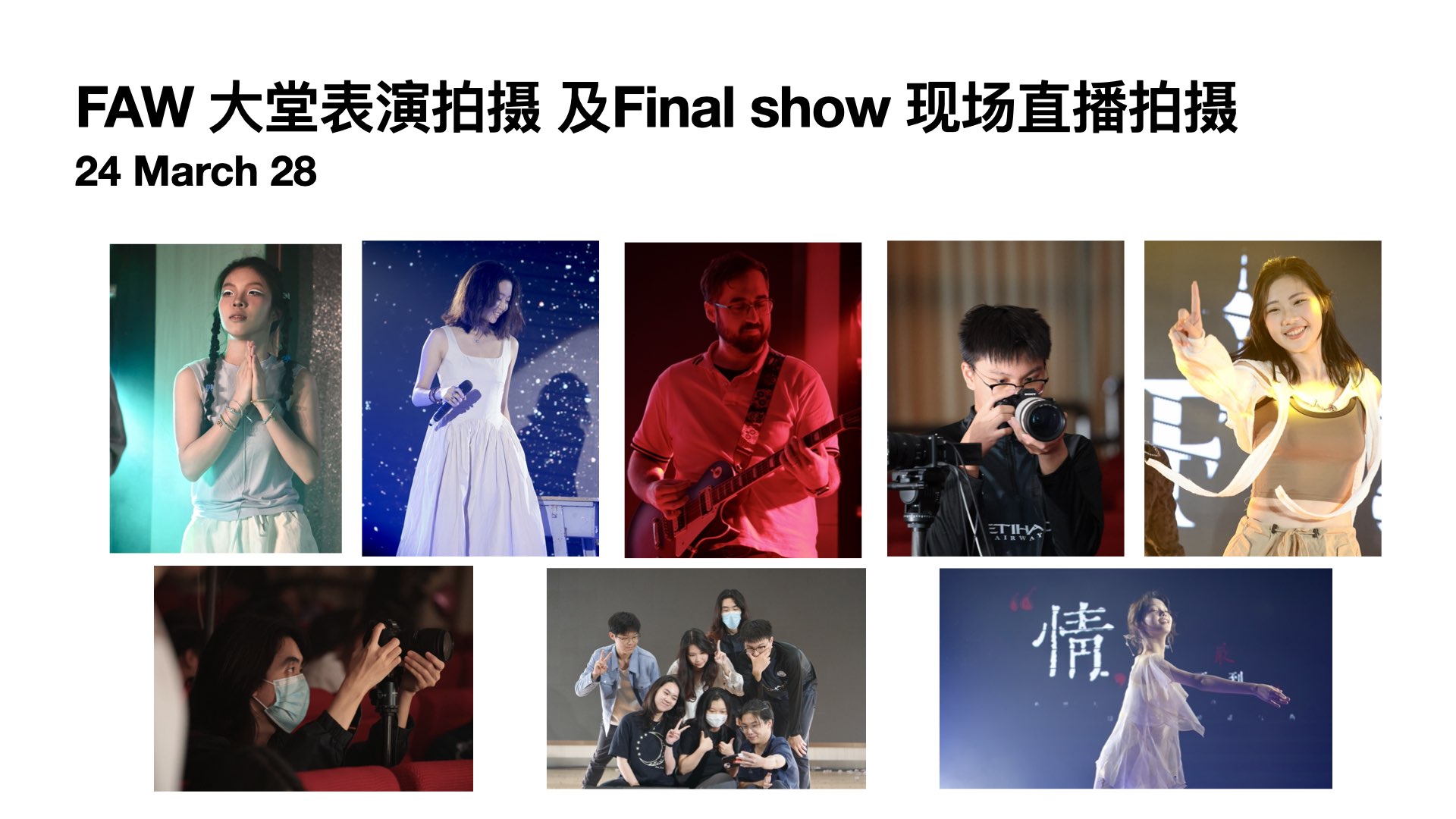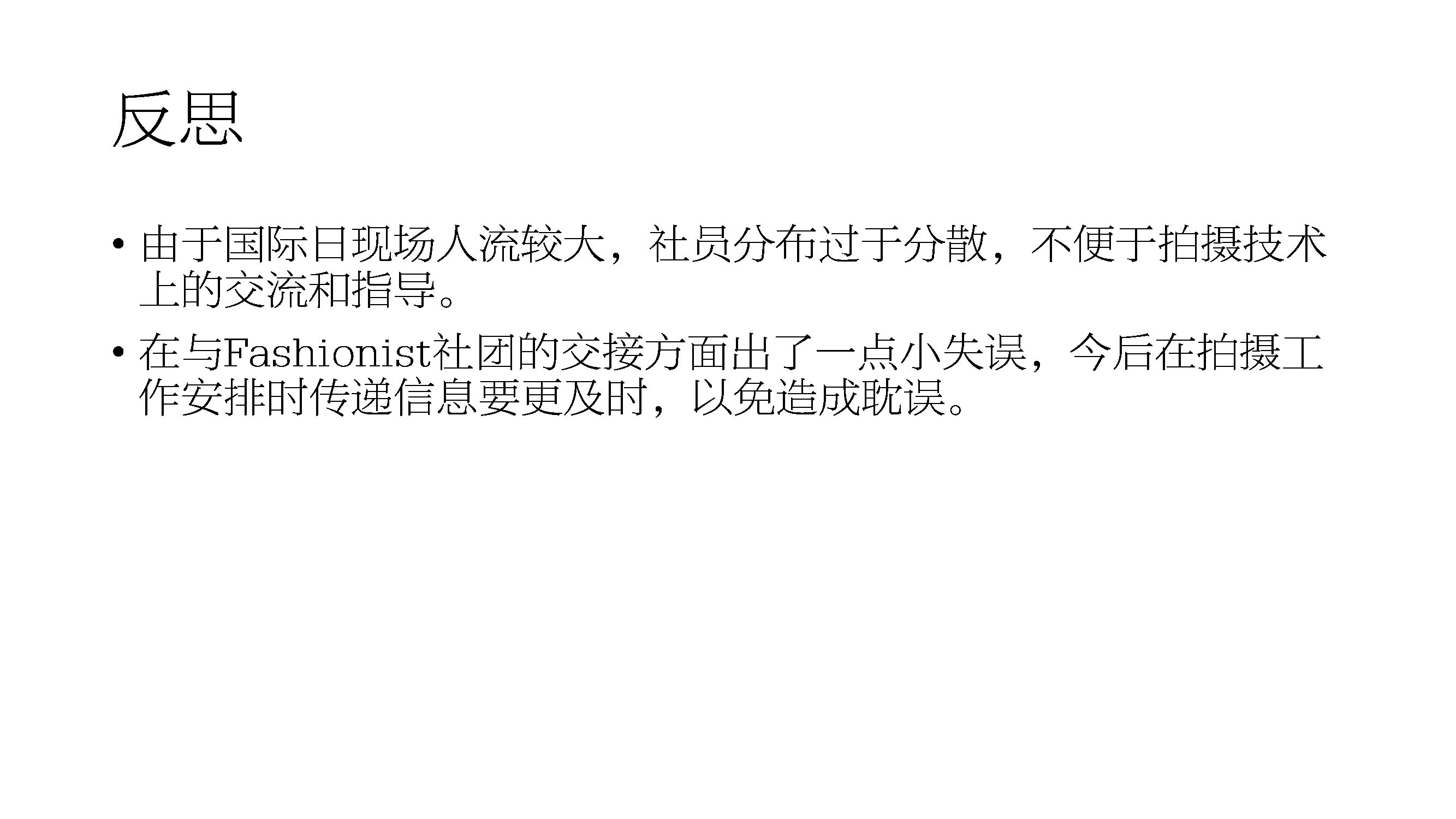 国际日期间,摄影社安排每个节目三到四人的拍摄,部分图片已在Fashionist社团公众号上发布。