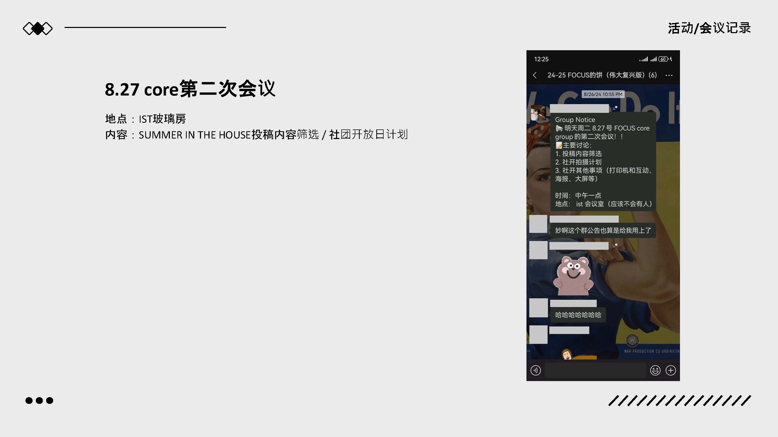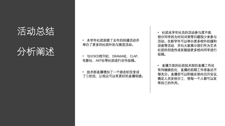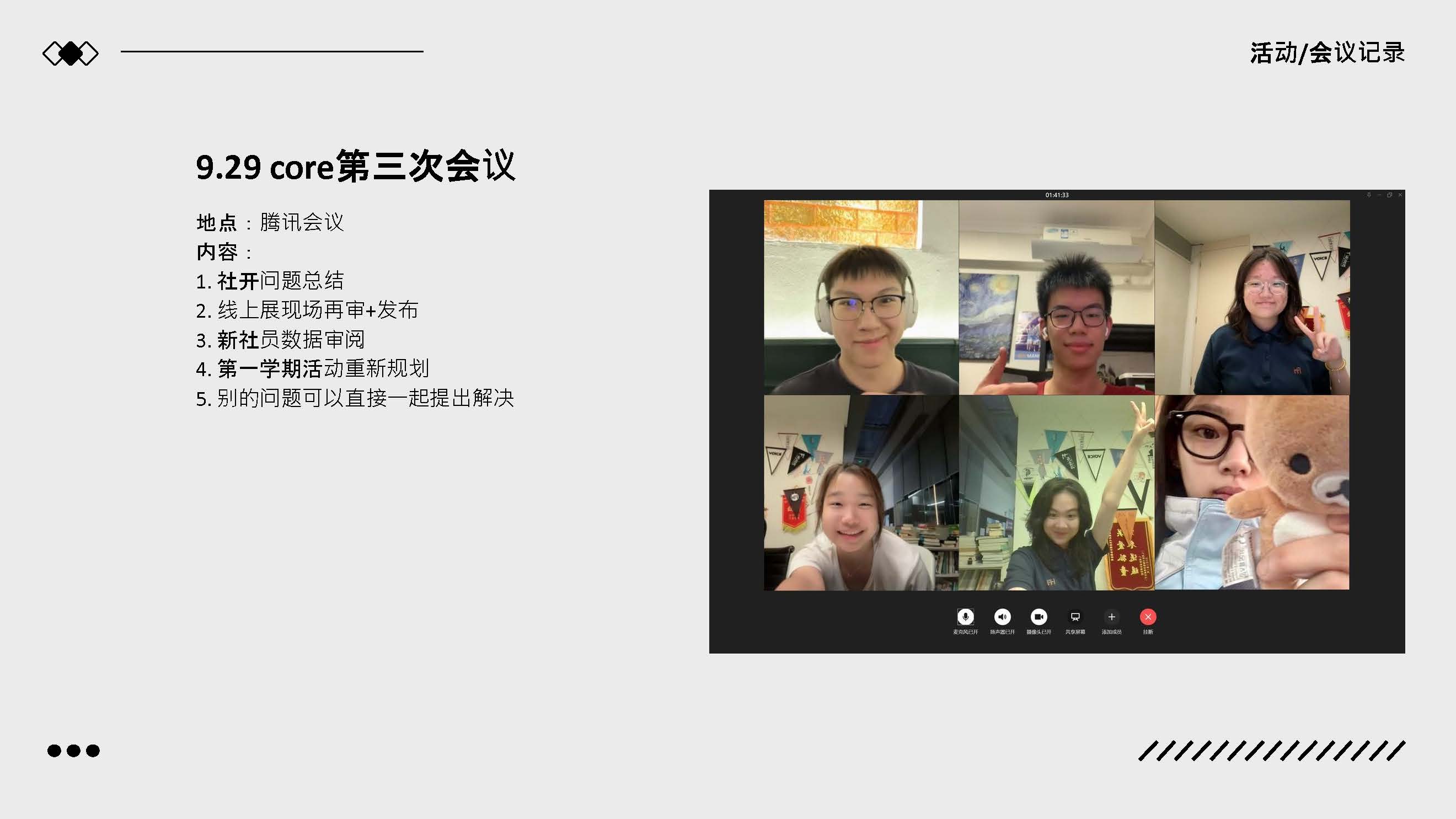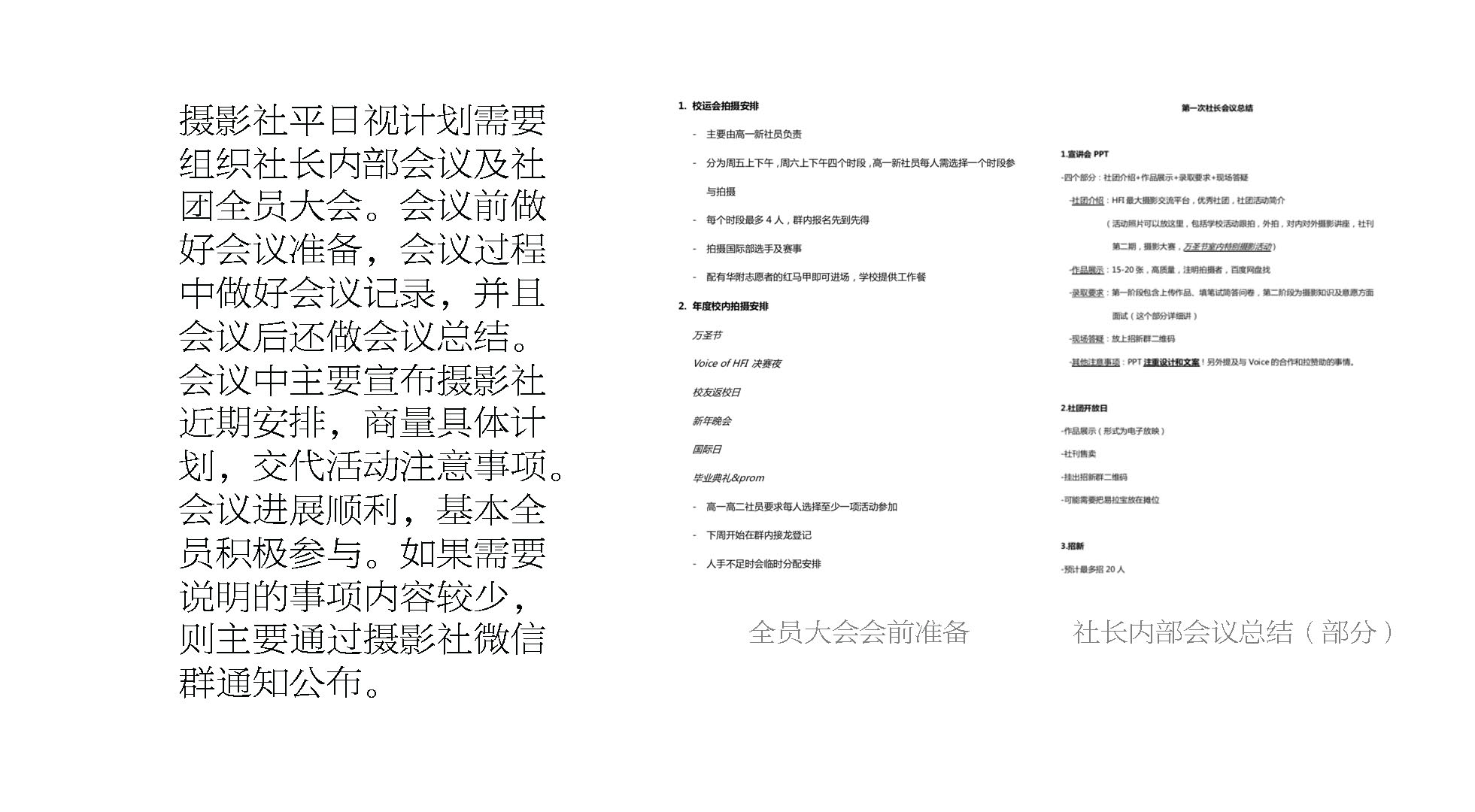 在确定各个部门的负责人后,开展社团例会将社员分部门,并布置任务。