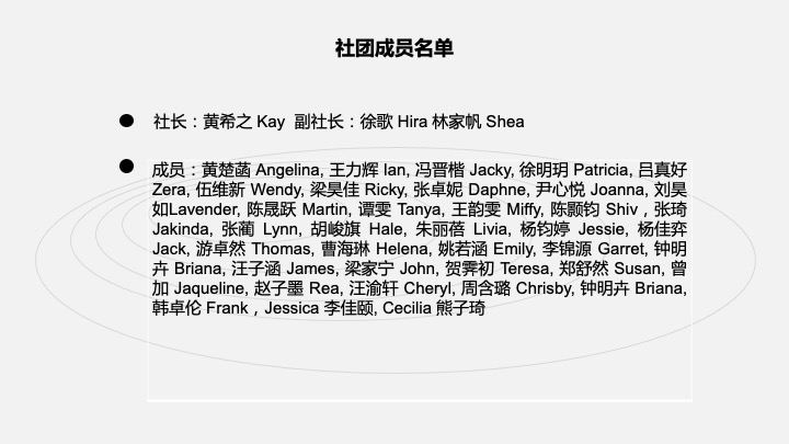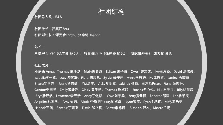 2022-2023学年社长/副社长:卢泓宇Oliver,姚若涵Emily,邓语涵Anna