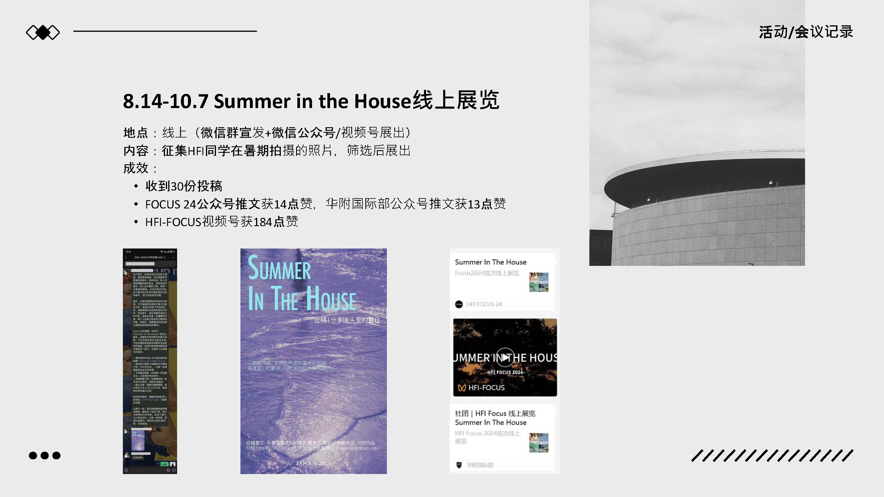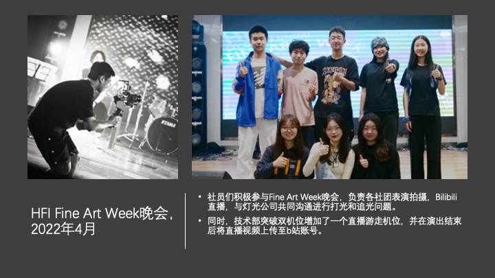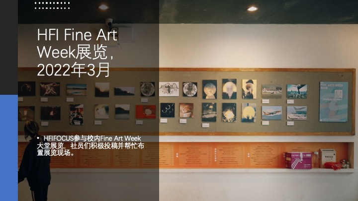 计划在新学年与别的社团合作进行艺术展览。鼓励HFI全校师生投稿并展示大家的作品在社团公众号。(例如个人的照片或VLOG都可以在公众号平台分享)