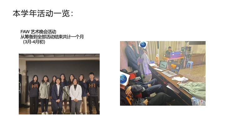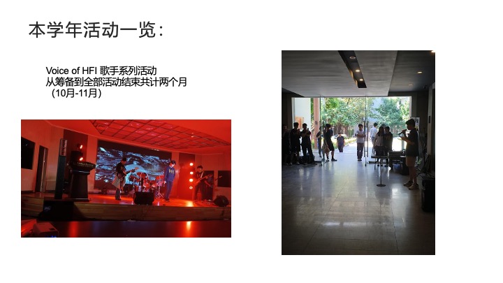 在第一学年负责筹办VOICE OF HFI(歌唱比赛)、圣诞晚会、万圣节活动。