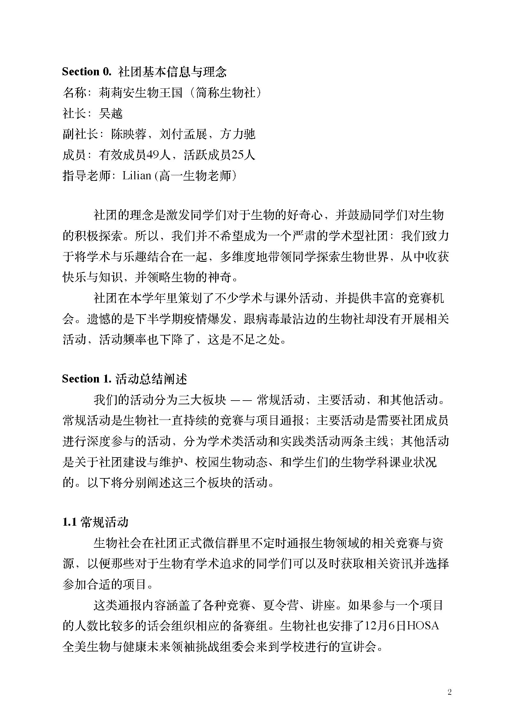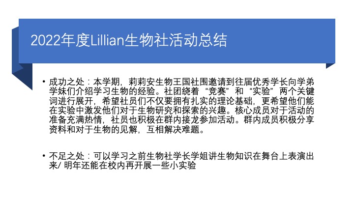2021-2022学年活动总结: