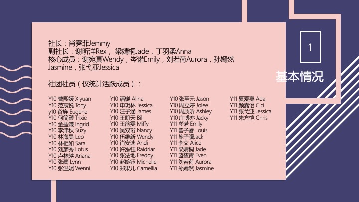 2018-2019学年社长/副社长:王颖晖Wendy,谢如佳Grace,徐竟越Charles