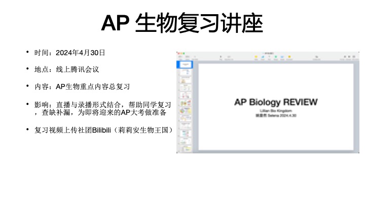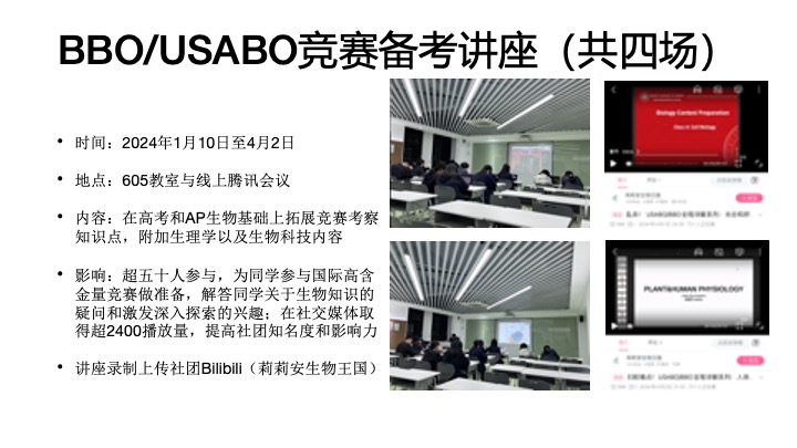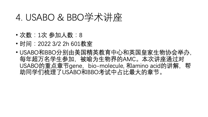USABO/BBO/HOSA备赛讲座(已成功举办两届)
