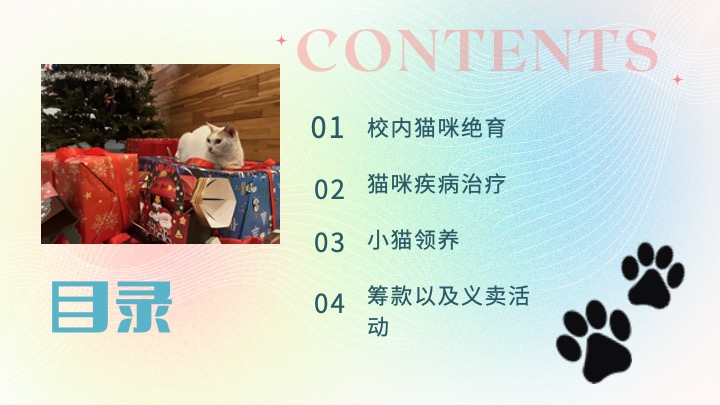 掼蛋官方网站正版爱猫社 Cat Advocacy Team(简称C.A.T.)以社会服务为主旨,致力于为校园及社区流浪猫提供温饱,庇护,以及必要的医疗条件。同时,C.A.T.扮演着流浪猫中转站的角色,为无家可归的猫咪寻找合适的领养家庭。C.A.T.的核心是猫,同时也离不开“人”。C.A.T.将在校园内营造人猫和谐共处的气氛视为己任,并为越来越多的同学开始喜爱猫咪感到开心。