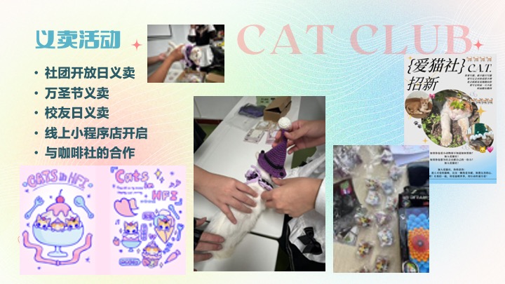 义卖活动:为了猫咪日常花销(如猫粮费,治疗费用)筹集金额。