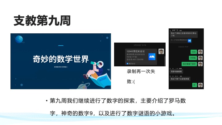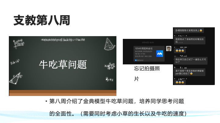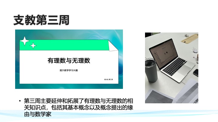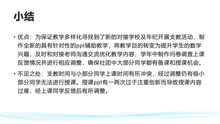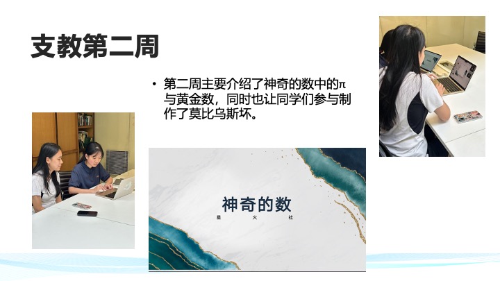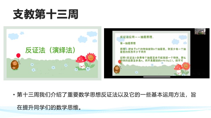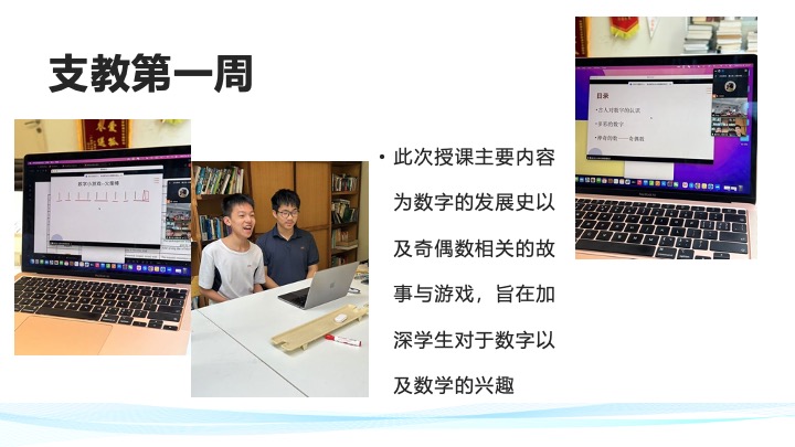 我们社团以帮助偏远地区学生提升数学为宗旨,通过线上支教的方式对偏远地区学生进行辅导,激发他们探索数学的兴趣,探讨有关数学的有趣问题,提升他们的学习成绩。