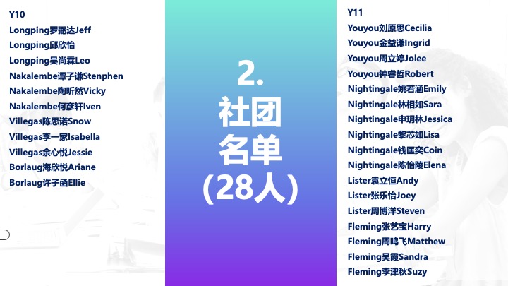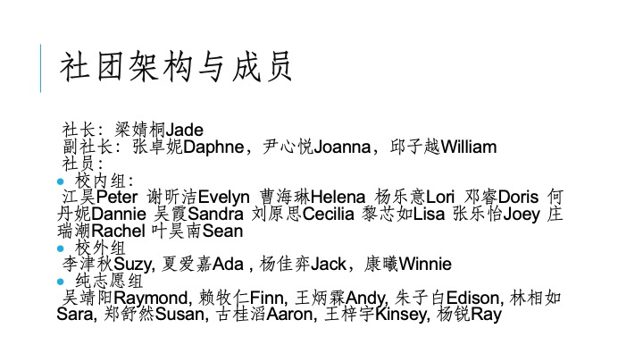2020-2021学年社长/副社长:梁婧桐Jade,张卓妮Daphne &尹心悦Joanna &邱子越William