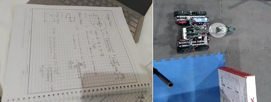 “11月23日,我们在华南农业大学(SCAU)的训练地点重新安排了马达的端口。在此之前,我们的6个车轮马达中有2个连载功率扩展器上,让它们很容易过载。我们把它们和机械臂上电机的端口交换,但是电线插错了,让我们花了很长时间弄明白程序里设置的左电机是怎么变成右电机的。再次交换端口并调整设置调整后,轮子终于正确地转了起来”