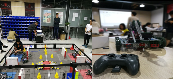 内容:组织有意向参加VEX竞赛的新社员前往华南农业大学机械工程学院的训练场地参观VEX 2018-2019赛季的场地以及机器。新社员体验操作机器以及初步接触如何完成比赛任务。