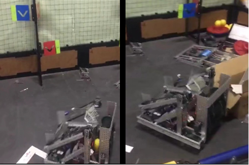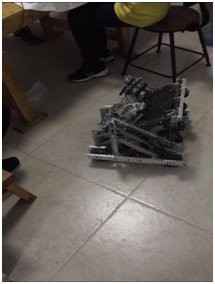 第二天,比赛开始了。一开始是练习时间和技能赛。我们没来得及参加技能赛,因为它很早就截止了。由于赛场上到处是机器人,我们的自动程序也没赶得上调。机器人在训练时很正常,但它一连场控就经常过载,让我们一连输了四场比赛。它的爪子很脆弱,手臂几乎没用。凭借未经调整的自主程序和笨拙机器人,我们最终在19支队伍中排名第14。