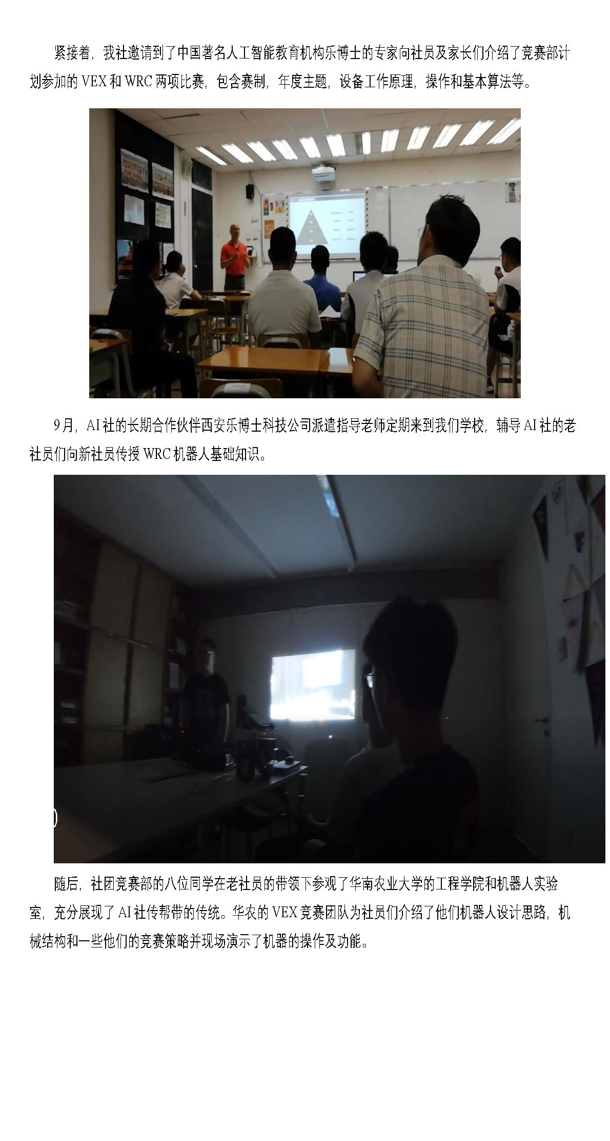 In early September, we held a trial lesson of robotics competitions (VEX and WRC AI), and we invited a professional robotics teacher to guide the new club members.
