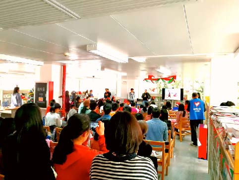 3. 感谢前德语角志愿者Frau Boda老师,并为她回德国践行。GZDA联盟正式接管每月一次的中山图书管德语角活动Members of GZDA expressed gratitude to Frau Boda, a former volunteer from Germany, who was in charge of the German corner, and announce that the GZDA would from then on take over the monthly activities in the German corner.