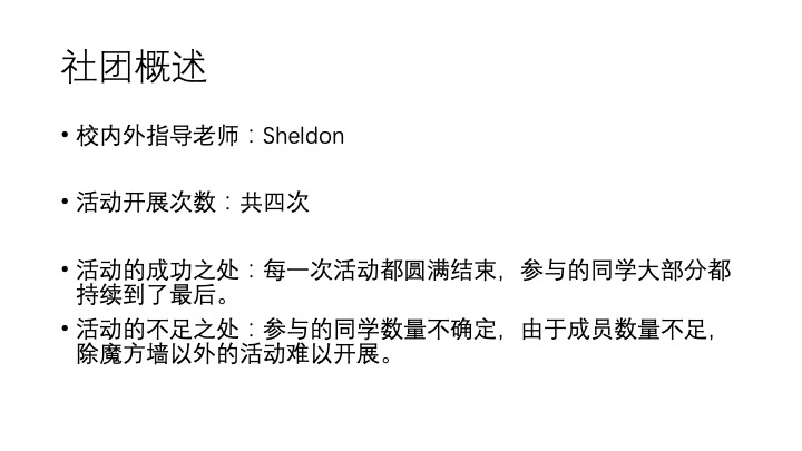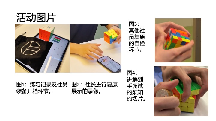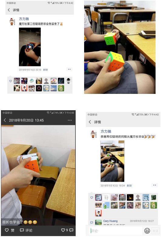 招新之后魔方社开展了零基础教学活动,有5 位同学,他们都在3 个小时以内就学会了魔方六面的复原。