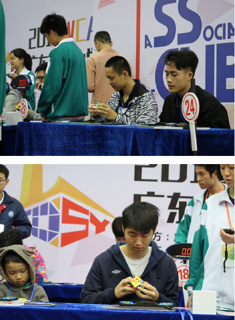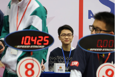 方力驰第三次参赛,三阶单次最快14.98 秒,二阶魔方更是以平均4.85 秒的成绩打进复赛。