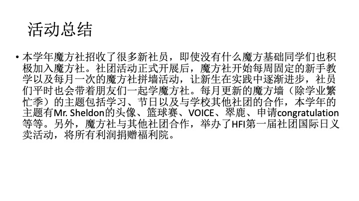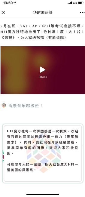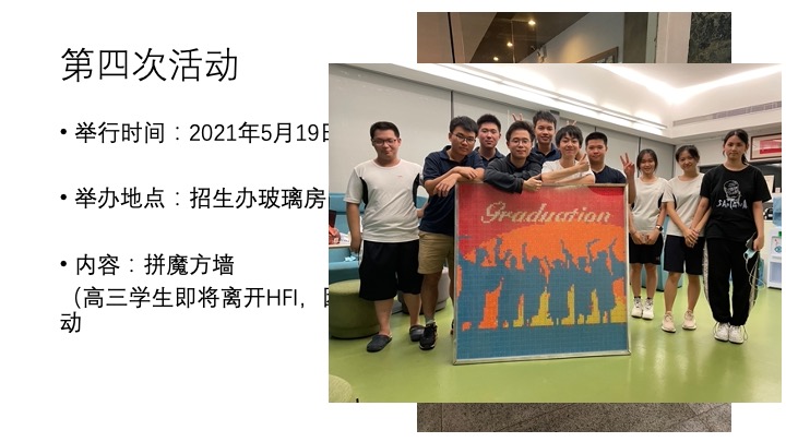 魔方社设计的魔方拼,多次被引用于学校的活动记录(voice of HFI, 校友日,招生活动)