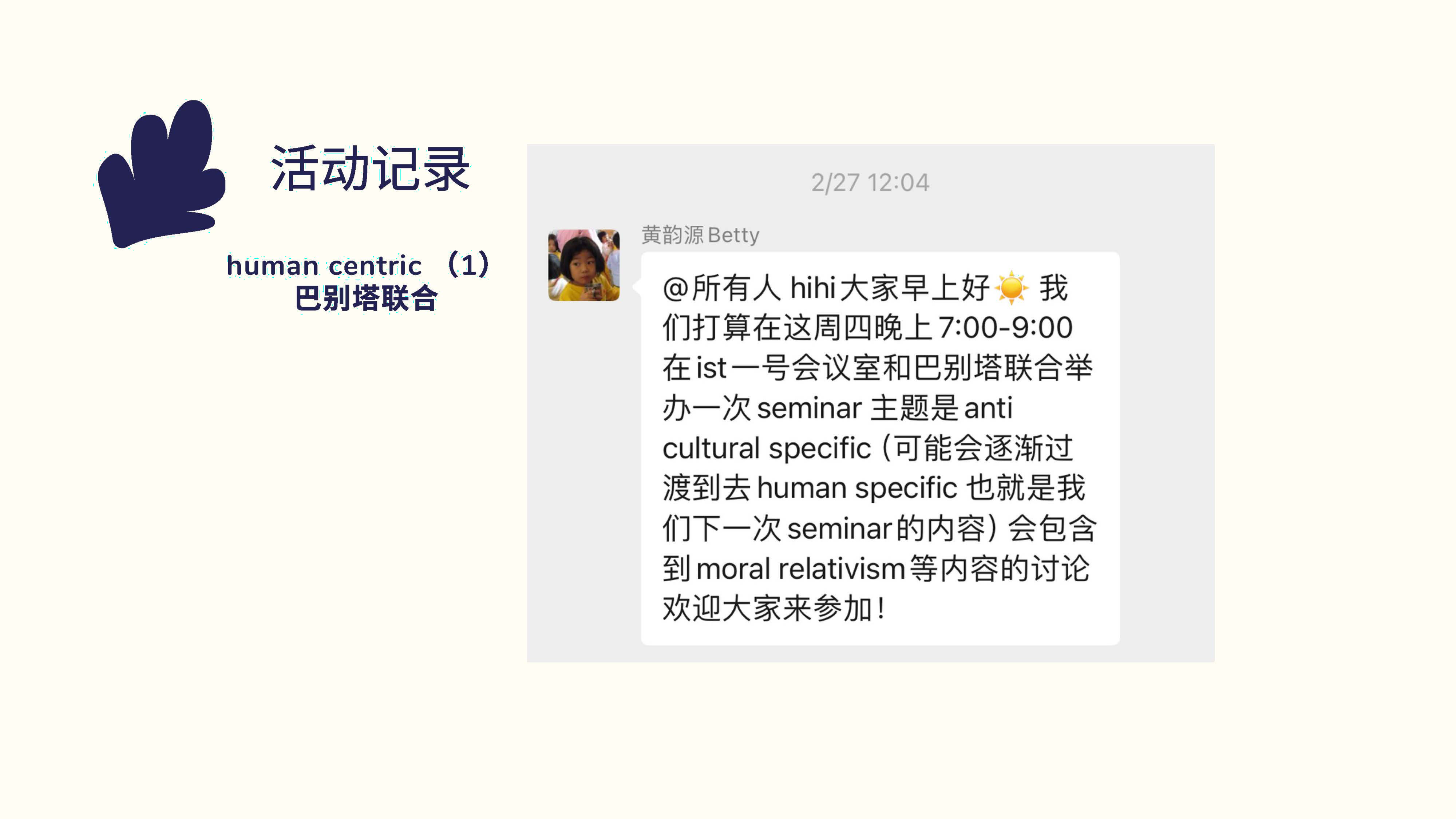 活动亮点:结合了第一次活动中对于康德哲学的引述,并丰富了哲学社内容而不仅限于传统论题(如伦理);同时,补充了学校哲学课的不足。