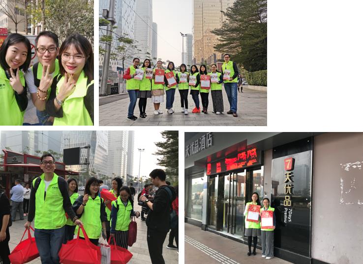 活动内容:跟随志愿者组织“大爱清尘“,前往市内多处酒店进行宣传活动,按要求进行宣传日历的投放,同时普及尘肺病相关知识。