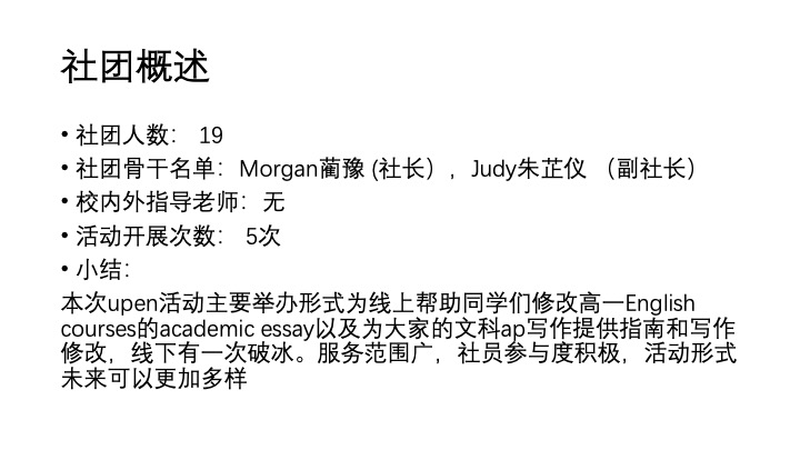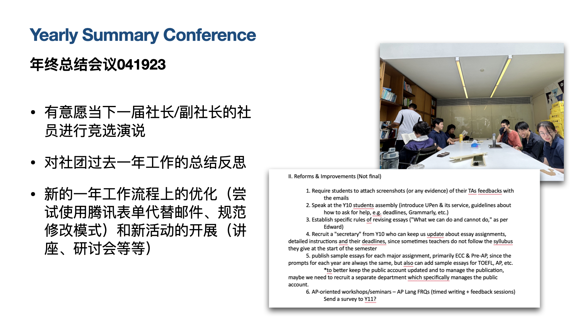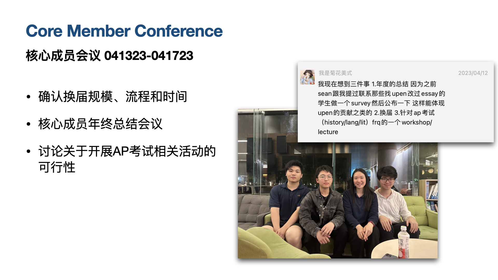 2022-2023学年社长/副社长:Anna邓语涵,William Shi、Frank代佳承、Andrew任清扬