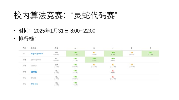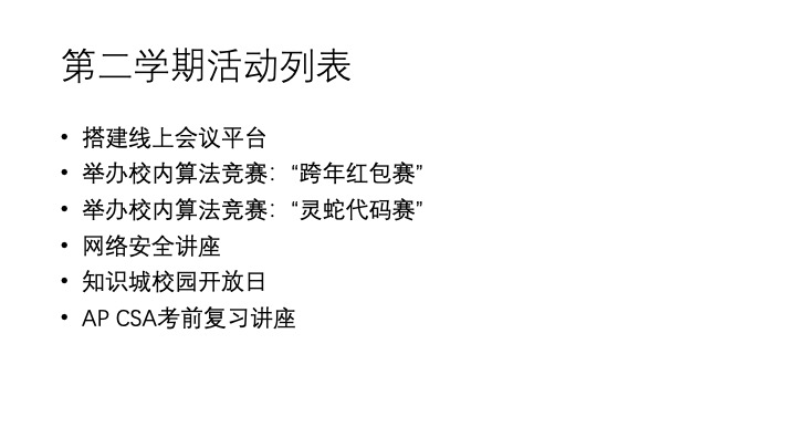 从编程入门到软件开发,从项目部署到竞技编程,在这里不仅可以培养逻辑思维能力与信息技术相关技能,还可以体验到思维、码力进步带来的成就。我们以授课、分享等多种方式,让社员参与活动,学习算法及其应用,享受编程和网络的乐趣,参加各类国内外计算机竞赛,为升学提供极高含金量的帮助,为未来其他学科的拓展提供机会和能量。