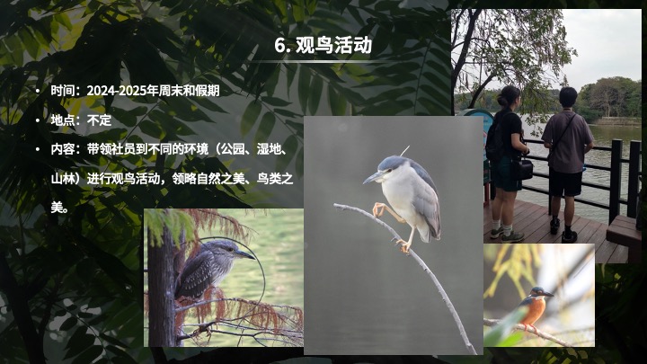 通过开展生态考察、环保倡导活动、可持续发展倡导和社区园艺项目等多种活动,我们致力于唤起人们对环保问题的关注,促进环保行动和可持续发展,为创造更美好的未来贡献力量。
