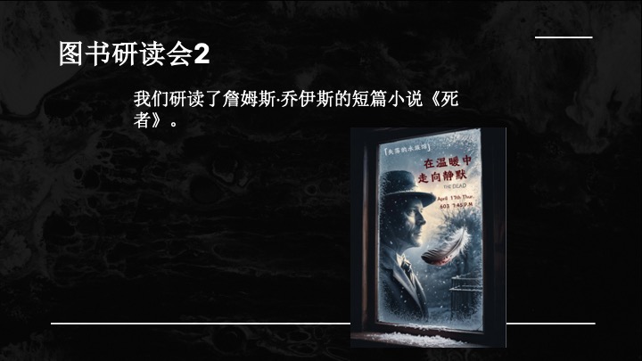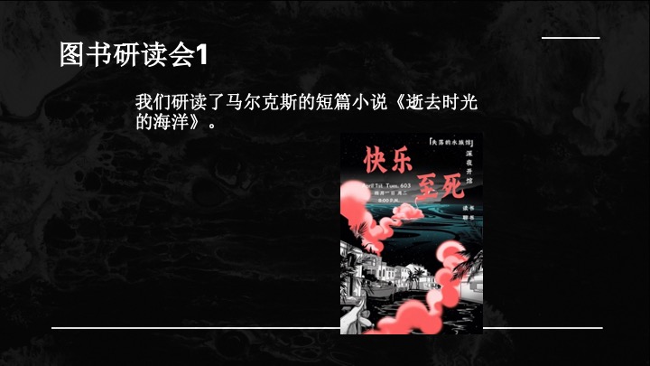 1. 精选短篇小说,做小说分享会,聊成长、聊感悟、聊“无病呻吟”(长期,一学期三次);