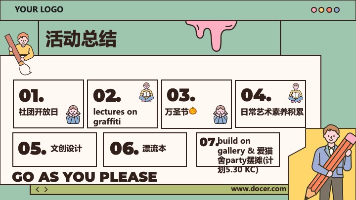 GO-AS-YOU-PLEASE is a club that uses the art of drawing to help fellow students discover and enhance their artistic abilities, as well as to relax. As our name suggests, "Follow Your Heart", members can engage in artistic creation according to the guidance of the club, without any restrictions or limitations, and enjoy a sense of accomplishment, regulate their emotions and maintain focus, and gain positive emotional experiences. Art is the use of abundant colors and other media for members to unleash their imagination. Art knows no hierarchy - both beginners and experienced painters are welcome to participate, and the works will be collectively exhibited by the club.