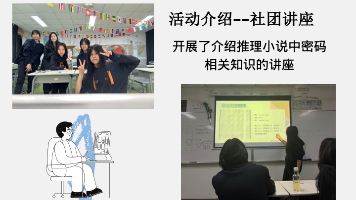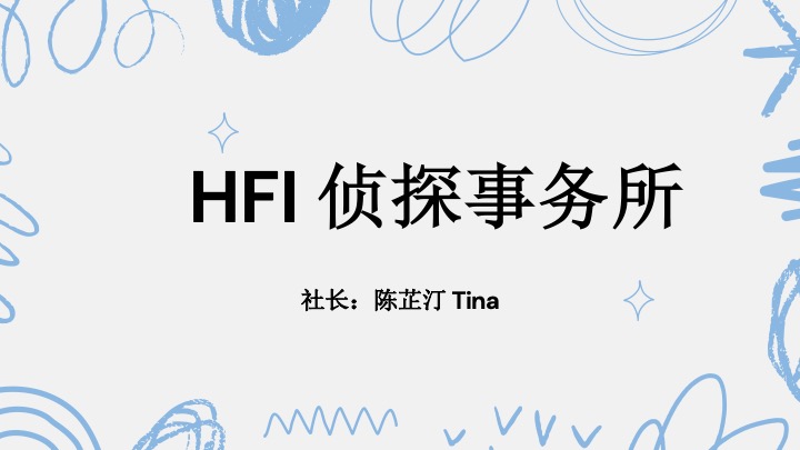 HFI Mystery Club aims to provide a platform for mystery lovers and those willing to develop a hobby to discuss, analyze, and experience the excitement and joy of mystery books. The activities of the club are based on mystery novels and will not involve suspenseful films and TV dramas, animation. Through relevant lectures, students understand the basic knowledge of mystery novels; and make mystery journals. In addition, the "Reasoning Murderer" activity will be held to exercise students' logical reasoning ability. At the same time, we plan to exchange and study with several university mystery clubs. All in all, the club hopes to enrich everyone's daily life, develop logical reasoning skills, and feel the fun of mystery novels.