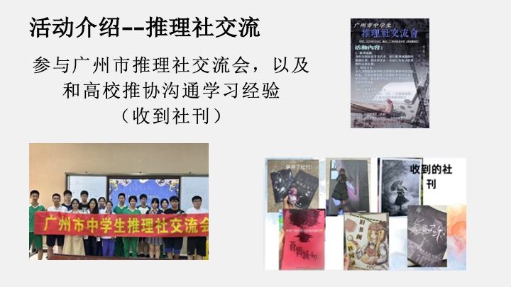 与其他大学、高中的推理小说社团的社交(周末或假期进行)