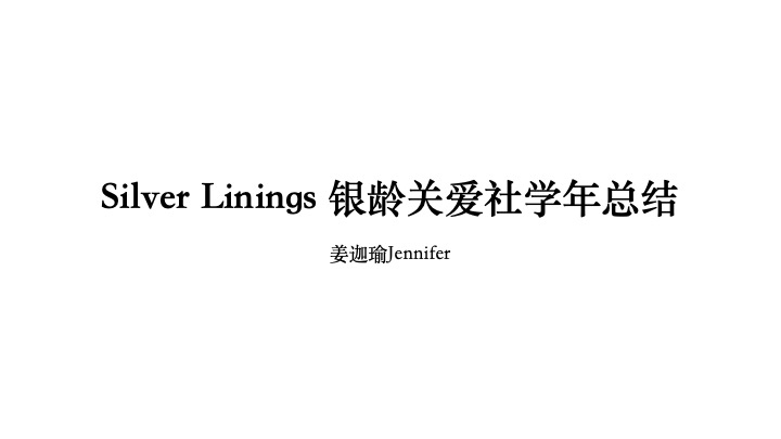 Silver Linings is a non-profit organization that dedicated to promoting social participation and practice for older people. Our mission is to strengthen the social connections of the elderly, enhance their quality of life, and pass on their valuable life experience and wisdom through volunteering and social practice. We are also a highly inclusive society.