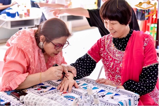 The Indian group of students from Hadid was more exotic, and in close cooperation with the Indian Embassy in Guangzhou, they invited professional Henna hand-painters and massage technicians from India to bring the most authentic traditional craftsmanship to the parents and students present. Hand-painted tattoos show the mysterious and fascinating charm of India. The intricate and exquisite patterns of Mehndi (Henna Tattoo) contain the magic that the Indian people believe in to ward off evil spirits and seek good fortune. In addition, the oil massage can bring the dual enjoyment of smell and touch, letting everyone sink into the subtle ancient oriental country.