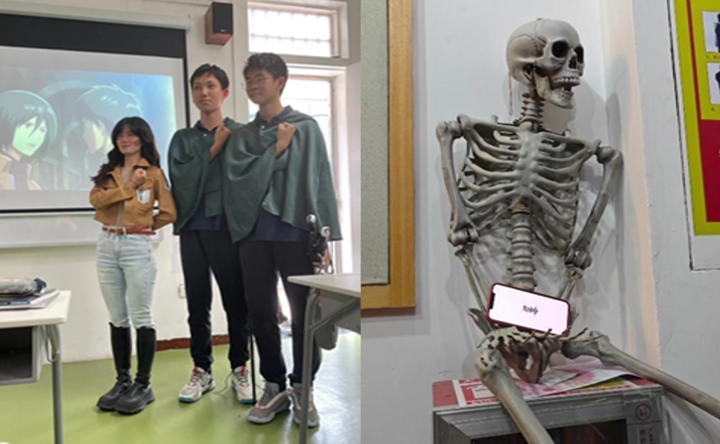 One of the greatest forms of amusement for HFIers on Halloween is sitting in a classroom and eagerly anticipating what creative getup their teacher would walk in wearing. When their teacher finally makes their dramatic entrance, the whole classroom will immediately explode into hoots and screams of delight. This year, the costumes of the teachers seemed to be even more creative and attractive, such as Susan’s costume as a cool swordswoman, which she claims to be Zixia Fairy; Yoee’s cosplay of the anime AttackonTitan; Joe’s getup as Nick the fox from the Disney production Zootopia and much more exotic outfits. However, the students’ costumes hardly paled in comparison to those of the teachers. You could witness students strutting down the hall in colorful and gothic attires. We interviewed a student who cosplayed as Johnny Silverhand from the game Cyberpunk 2077 and went to every classroom claiming that he was going to “burn this city to ash.” He commented that this year was quite different from last year because “instead of getting to wear outfits for the whole day, previously students were allowed to wear their costumes only at night.” Moreover, he remarked that being caught up in the Halloween spirit, the diversity of costumes this year is even more abundant, compared with former years.