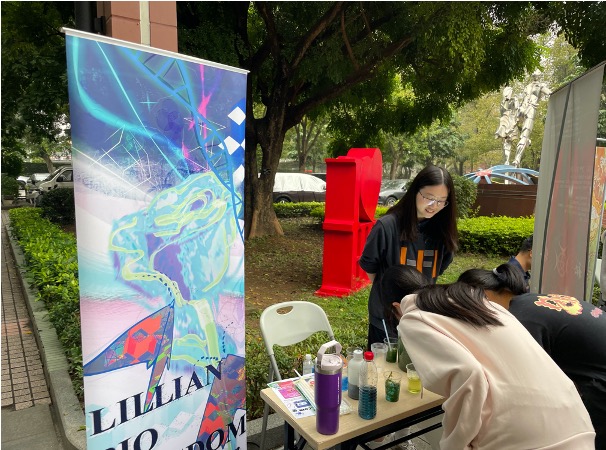 Clubs in HFI participated actively on the Open Day and demonstrated the rich and various activities HFI students engage in. Peer-buddy, a club that helps new students adapt and succeed in HFI, guided parents around the campus and enthusiastically introduced places where HFIers study hard, run freely, and eat healthily. The club also prepared pamphlets written by juniors and seniors regarding life in HFI that provide useful techniques and tools for future HFIers to succeed academically and socially in HFI. Lillian BioKingdom, the biology club named after the respected biology teacher of HFI, brought a mini-lab to the scene. The club presented the magic of photosynthesis to junior high students by marimo. Visitors blew air with a straw into a plastic cup filled with blue solution. After the carbon dioxide blown reacted with water, the solution turned yellow. Then, when the marimo was placed in the cup and shone under light, by photosynthesis, the carbon dioxide was depleted and the solution turned blue again. The participants were intrigued by the knowledge in the experiment and the fun and diverse academic life of HFI. The clubs that participated passionately welcomed parents and students, providing them with a friendly, academic, and interesting idea of life in HFI.