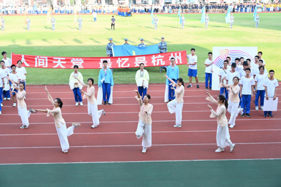 HFI国际部的同学们选取了“杭州亚运”作为主题元素,将中国文化、亚运精神和互联网元素融合到一起,共同演绎出亚洲各国及地区相聚在美丽杭州城,通过运动竞技建立友谊,心心相连,世界相融,携手同行的理念。
