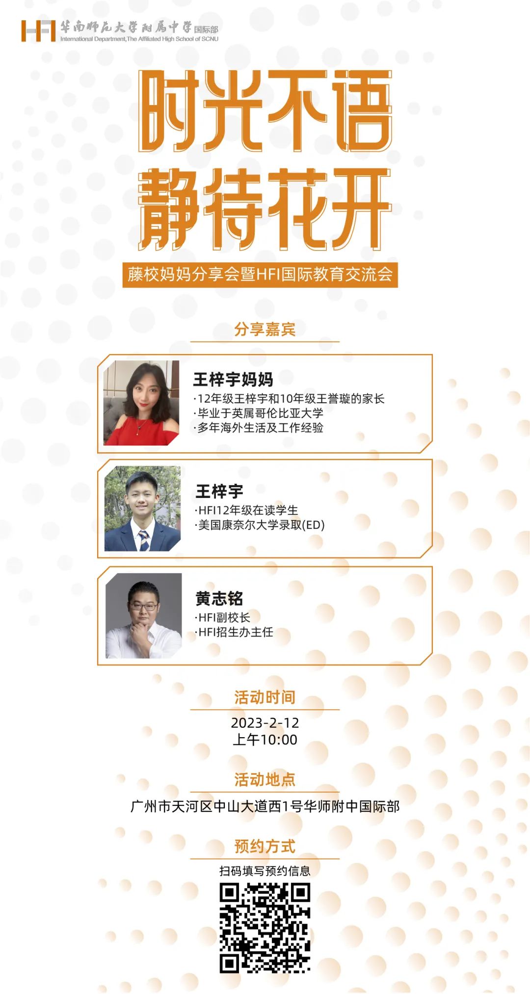 如今又是一届学生即将完成申请,我们邀请到了孩子在今年早申阶段获得美国藤校「康奈尔大学」录取的王梓宇妈妈,分享她对于孩子培养的心得,以及她对教育的理解;王梓宇同学也会现场分享他在HFI的学习生活和大学申请中的经验。