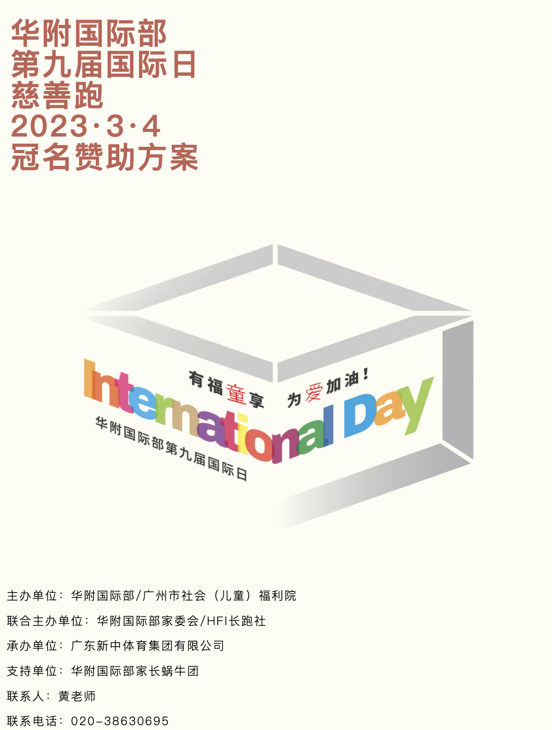 为了表示我们的感谢,“华附国际部第九届国际日慈善跑冠名赞助”—— 提供现金人民币¥100,000的赞助者,将获得: