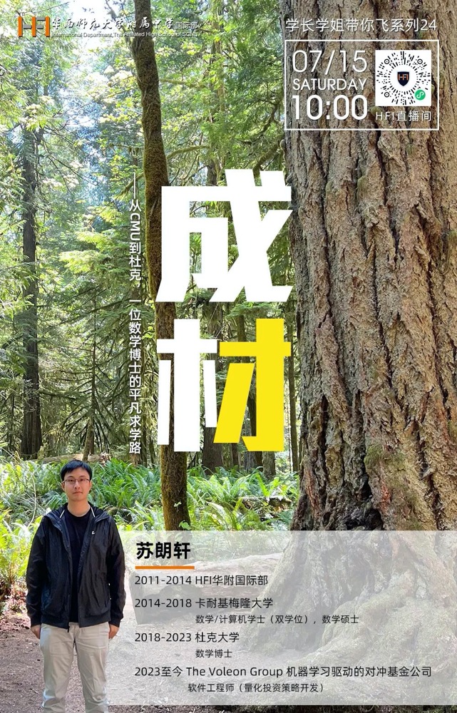苏朗轩同学符合大家对于理工学生的印象:很聪明,话不多,从小擅长理科,但他从小就不喜欢国内靠死记硬背、刷题式的学习方式,因此从初一开始就在逐步了解国际教育路线,当年也考察过广佛地区的一些国际学校,多方比对之后,觉得HFI的课程更具有挑战性,满足他对于课程学习的要求,因此最后来到了HFI,开启了他的国际教育之路。