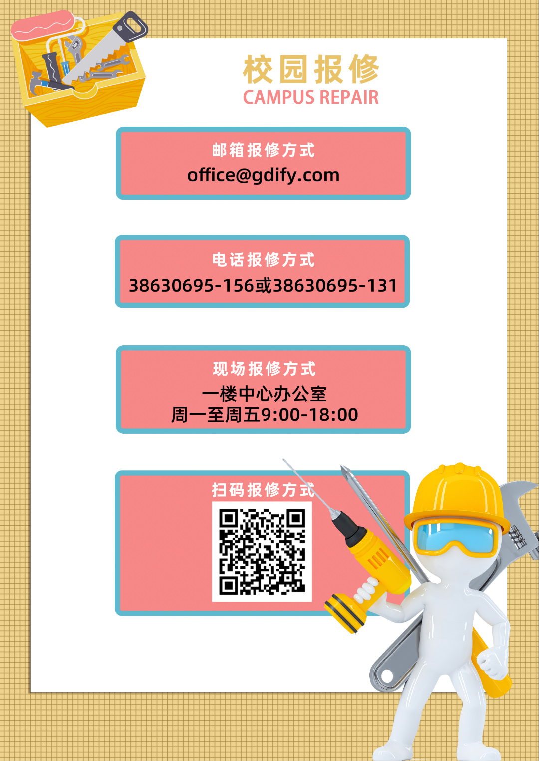教学区域设备报修 3863-0695(分机号132)