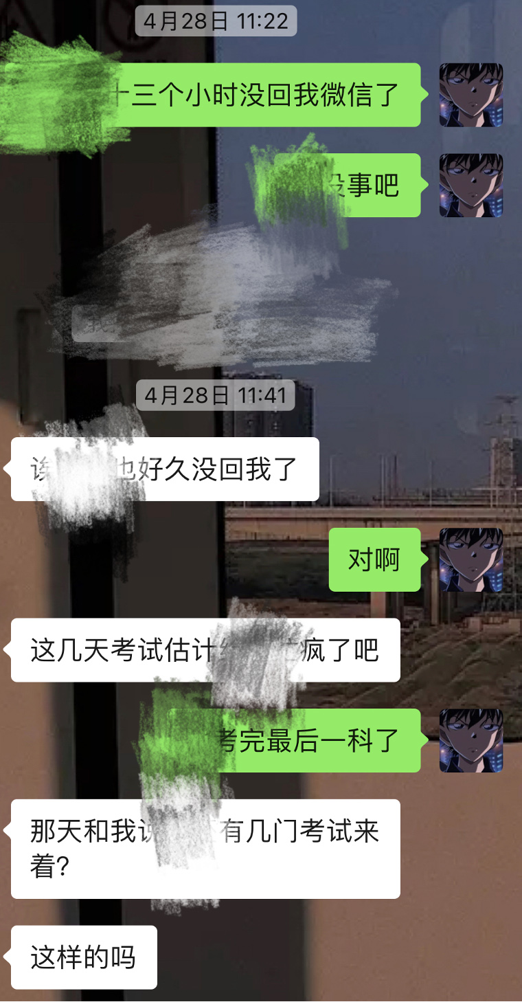 11:15我还记得是节语文课,我又给ta发了一则消息,打了通电话,可是还是没回。我跟邻座的jdy说起这事,jdy安慰我说应该没事的;