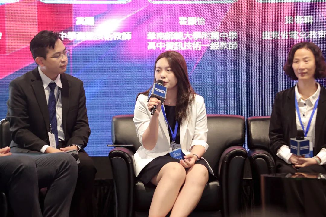 霍颖怡老师代表作为大湾区优秀人工智能教师代表在人工智能教育圆桌论坛环节发言。