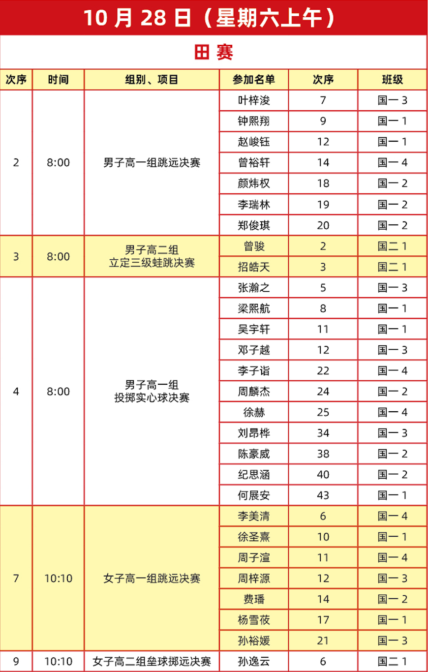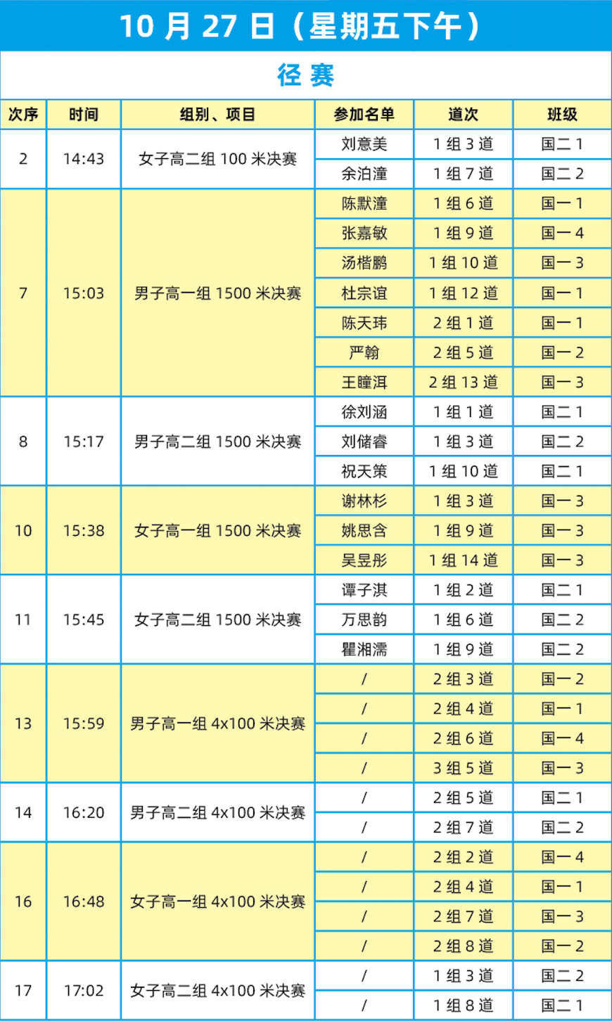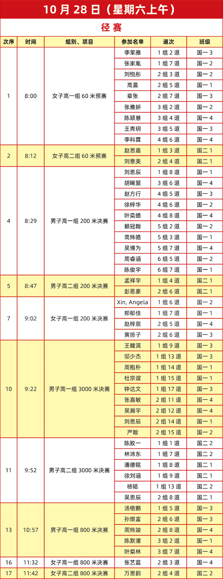 具体赛程安排详见下表,期待所有老师和同学们都可以参与其中,一同为参加开幕式和参加比赛的同学们呐喊加油!