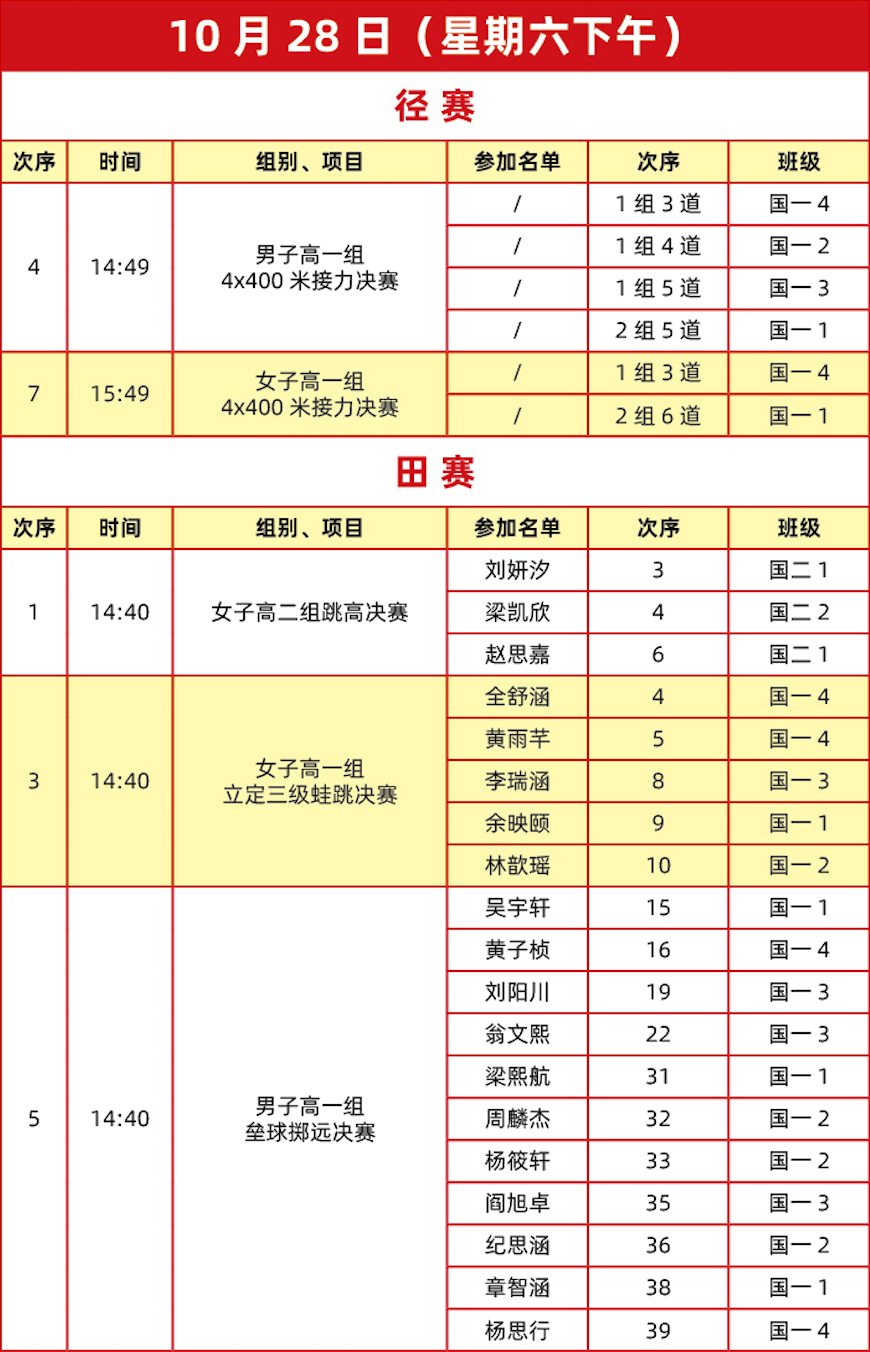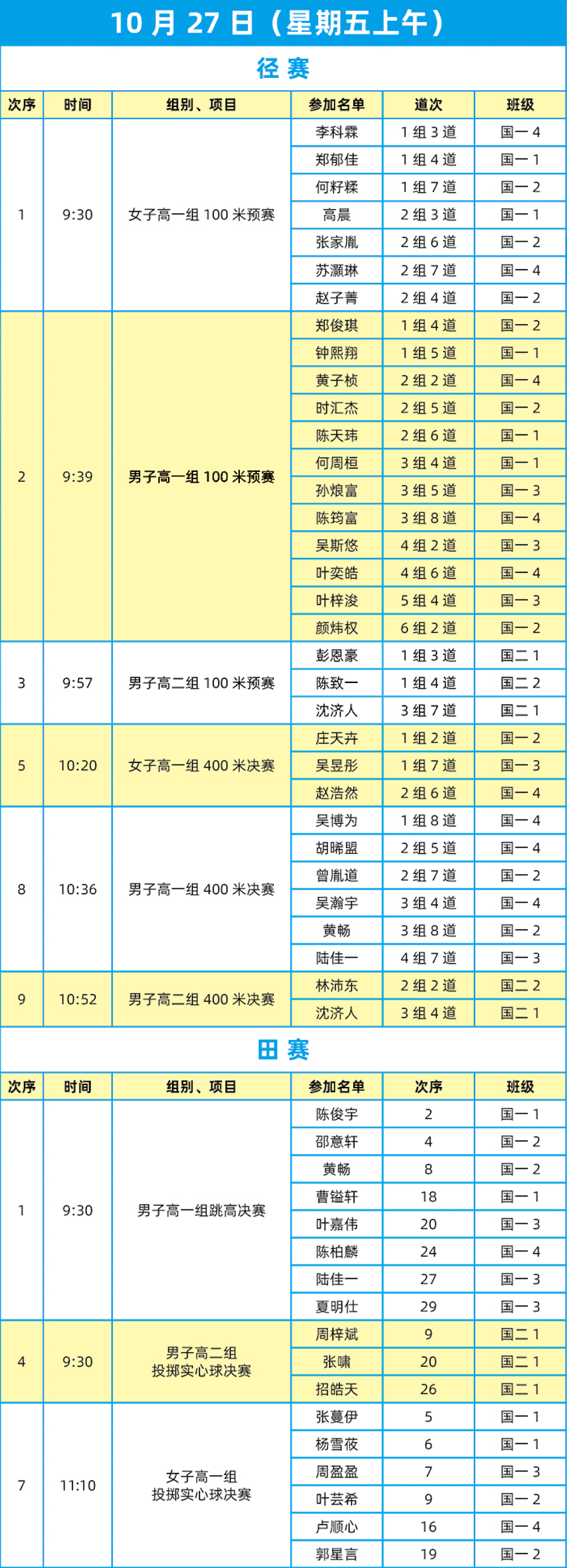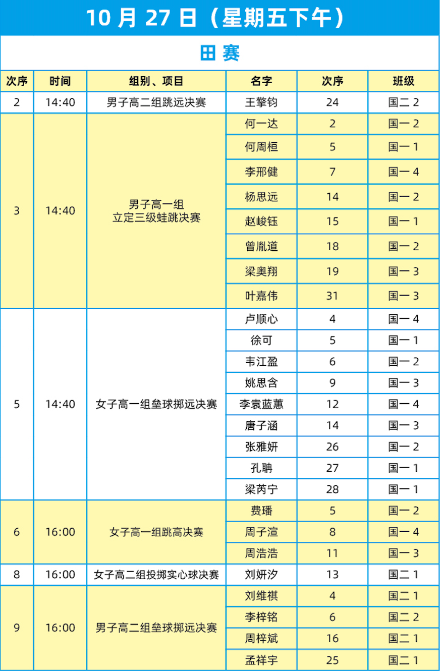 具体赛程安排详见下表,期待所有老师和同学们都可以参与其中,一同为参加开幕式和参加比赛的同学们呐喊加油!
