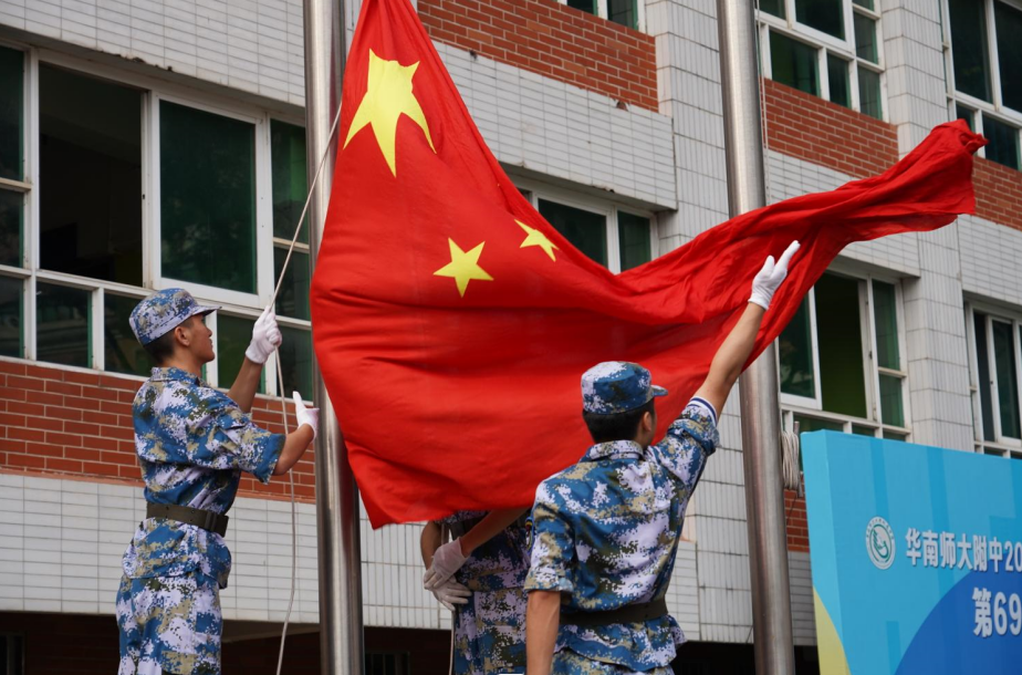 入场式表演结束后,在全体师生肃穆的注目礼中,鲜艳的五星红旗伴随着雄壮庄严的国歌冉冉升起。