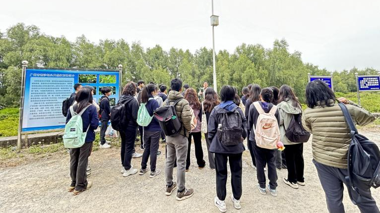 基于社区的课程:学生们了解了红树林生态系统对附近社区和整个广州的重要性。