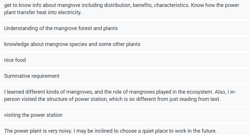 Some of the students’ Key take aways from the whole activity 一些学生主要收获: