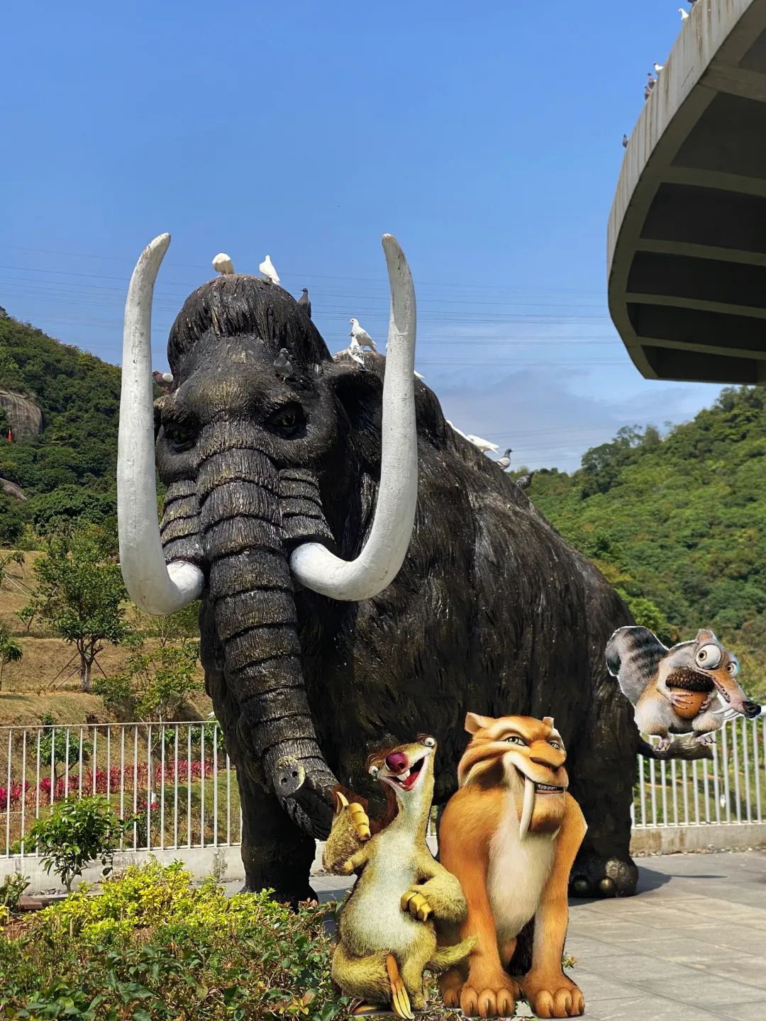 门口那背上站满鸽子、一比一还原栩栩如生的巨型猛犸象雕塑,让人颇有几分“长毛象Manny从冰河世纪走来”的错觉。